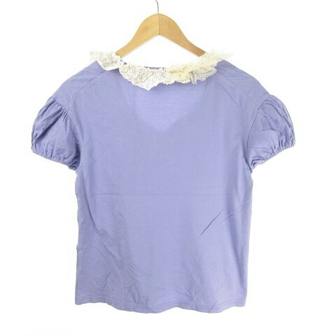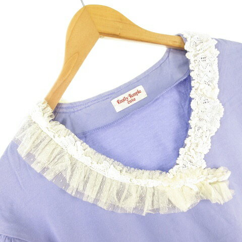 【中古】 エミリーテンプルキュート Emily Temple cute パフスリーブ カットソー Tシャツ フリル チュールレース 異素材レース レース切り替え ラベンダー ライトパープル うす紫 レディース 【ベクトル 古着】 190415